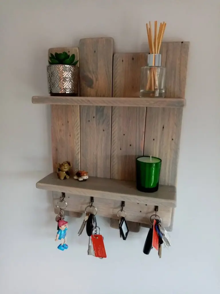 I think this is called beauty small wooden items which is made with old wooden pallet look more beautiful then big items. Chose the idea from here for a key holder if you interested in making of a key holder at your home.