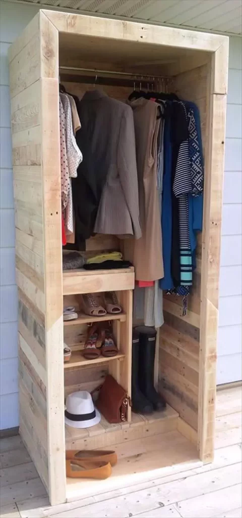 Everyone could use a few tips and tricks to organizing their cloths in DIY Pallet Wardrobe. Below we have great ideas of this ways to organize and store your clothing in your Pallet Wardrobe. Even if you have a smaller wardrobe it is easy to get perfectly organized using some great container and shelving units that can easily install into your small wardrobe. I am sure! that you will enjoy in your home from this Gorgeous Pallet Wardrobe, and I am here to share them with you!